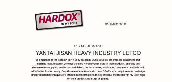 金山重工連續(xù)五年受瑞典鋼鐵奧克隆德有限公司Hardox?悍達(dá)鋼授權(quán)